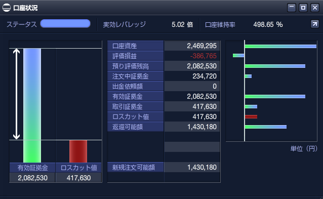相場が不安定な中、損切りをしながら平均保有額を下げています。